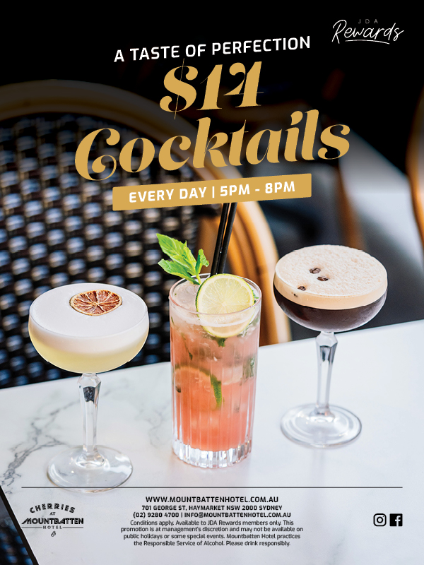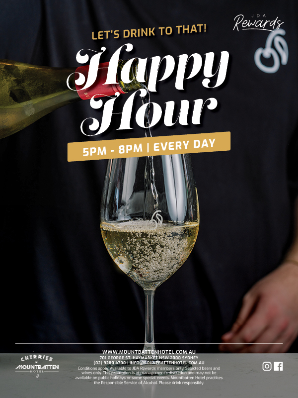 Discover Cherries at Mountbatten Hotel — your go-to spot for daily happy hour specials!